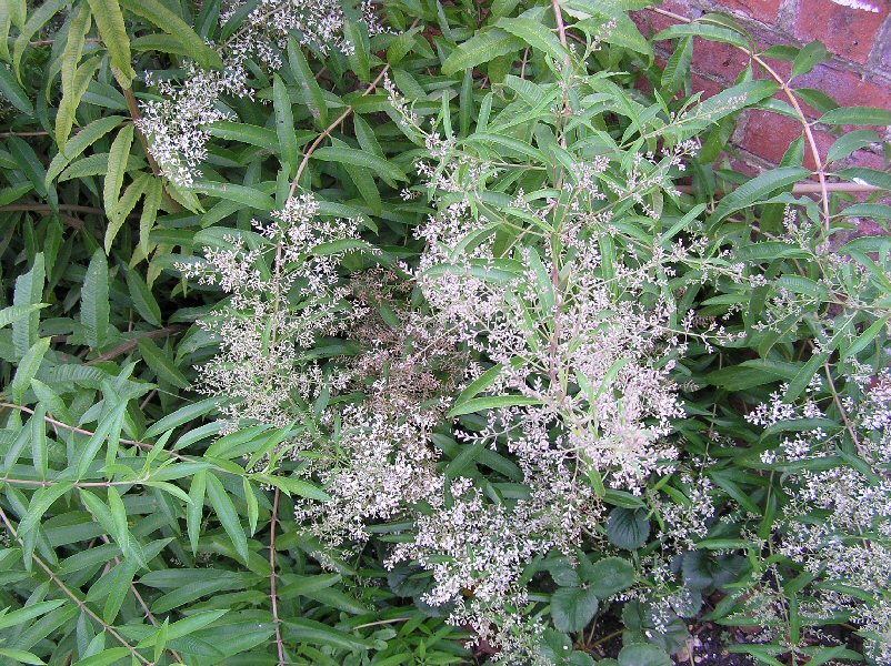 A hardy perennial deciduous sub-shrub to 2m x 1.5m (6ft x 4ft) with narrowly lance-shaped, strongly lemon-scented leaves and open panicles of tiny white or pale lilac flowers
