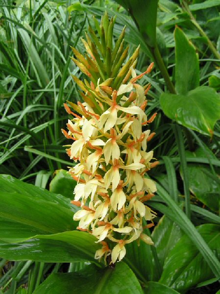 A large, to 1.8m, hardy perennial. native to the Himalayas with luxurious exotic foliage and large, sweet scented, yellow flower heads in summer and early autumn. Each inflorescence holds up to 50 exquisite little flowers. An evergreen in milder climes but here it is cut back by frost. In some parts of the world with a favourable climate it can be considered a terrible weed!