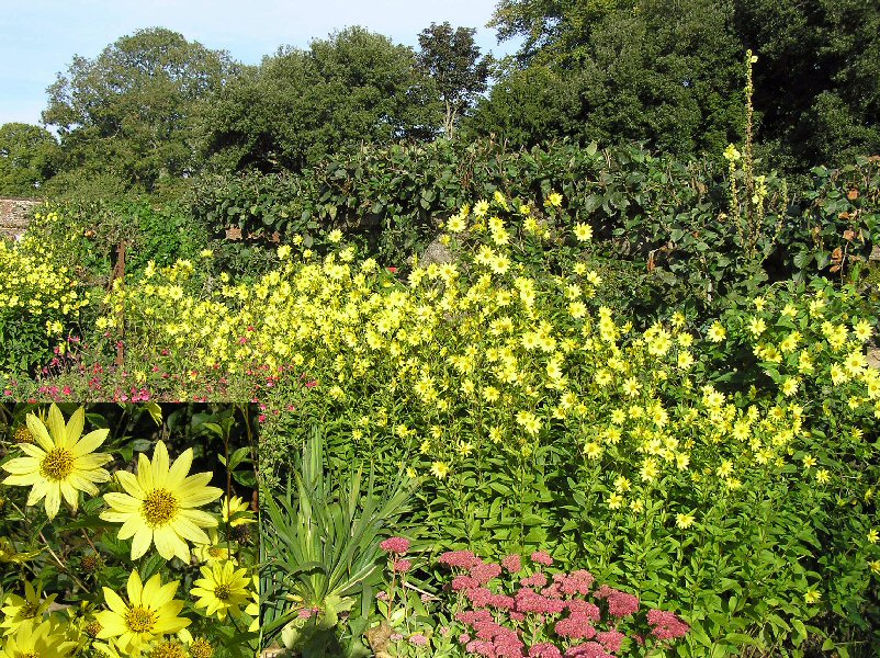 A strong-growing, tall, upright, hardy perennial to 2m, with coarse, dark green foliage, forming a bushy clump of green leaves, topped with branching sprays of soft yellow 5cm daisies in late summer and autumn.