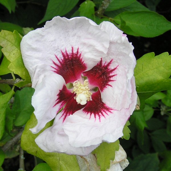 A hardy medium sized slow-growing shrub that is one of the last to come into leaf starting yellow during June but becoming dark green in time. The flowers begin in July or August and last for several weeks. 'Diana' (1963, USA) has large single, pure white petals with crimped edges.