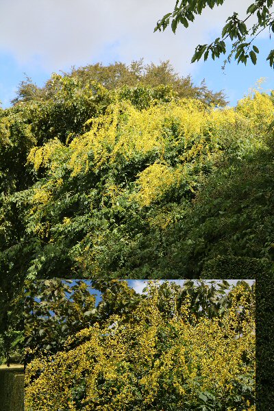 A hardy elegant small deciduous tree with pinnate leaves, pinkish in spring, turning yellow in autumn. Small yellow flowers in conspicuous large panicles, followed by ornamental bladdery bronze fruits. Native to China and Korea.