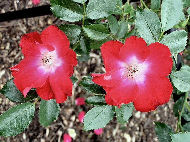 A vigourous climber up to 5m - 6m with repeat flowering,large, single red blooms with a white eye set off by brilliant yellow stamens, The foliage is equally exceptional with its large, glossy, dark green leaves.