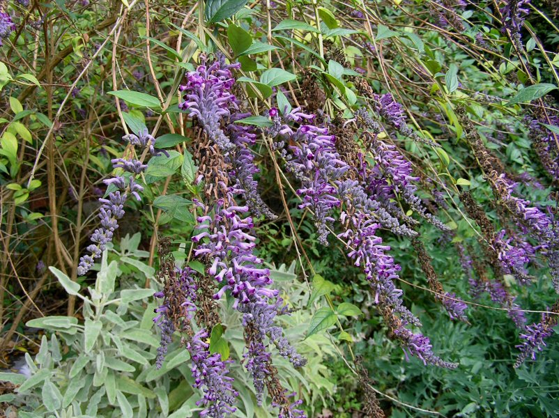 A hardy, deciduous, large spreading shrub up to 2m - 2.5m with curved, tubular,small purple flowers over 10cm ovate green leaves. Native to China both the foliage and the flowers have a lax habit.