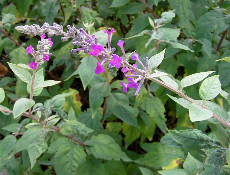 A hardy, deciduous, with conical spikes of bright purple scented flowers from August supported and softened by dark grey-green slightly serrated foliage. A cross between B.lindleyana and B.crispa it is supposed to stay small but it can grow to 2m.