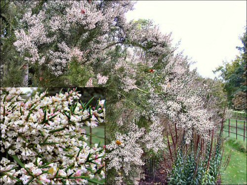 A deciduous slow growing shrub to 3.5m by 3m (12 ft x 10 ft), hardy down to -5º C. Native to South America it has vanilla scented white flowers produced throughout the Autumn. A very prickly plant, with no real leaves, it makes a good windbreak and security hedge, over time.