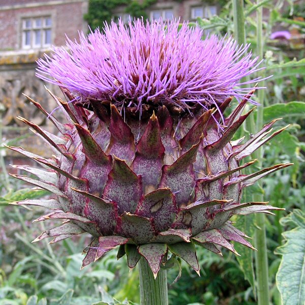 A large, up to 2m, hardy perennial with striking silvery, thistle-like foliage. The tall flower stems are topped by fat thistle buds which resemble small globe artichokes that open into large purple thistles, in summer, which attract lots of bees; the dead flower-heads can be left on the plants and will provide an attractive feature over the winter months. An old Victorian favourite, once grown as a vegetable and blanched for use rather like celery,