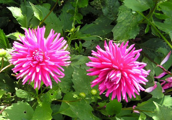 'Nuit d'Ete' - this very dramatic flower will provide the illusion of shade in full sun; makes a nice contrast with light colored flowers; medium green leaves; 2'-3'.