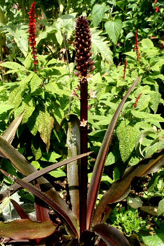 A bulb, native to South Africa, the foliage of which emerges bright beetroot in spring, changing later to a bold and glossy dark green, with a faint purple stripe at the centre. The summer leaves are up to 60cm and the name 'Sparkling Burgundy' describes the flower spike, which can last up to six weeks, perfectly.