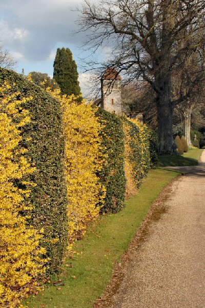 A deciduous, arching, gracefull hardy shrub with slender shoots. Nodding, narrow trumpet-shaped, bright yellow flowers open from late winter to early spring before mid green leaves appear. H: 3m S: 3m (10ft x 10ft). Native to Asia.