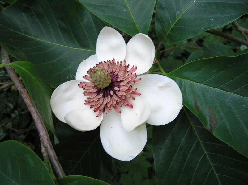 An uncommon large wide-spreading deciduous shrub 3m (10ft) x 3m (10ft) with dark green, ovate leaves also known as M. wieseneri. It is a cross between M. sieboldii and M.obovata. Its most notable feature is the remarkable fragrance of the ivory-coloured flowers, which has been likened to spicy pineapple. The flowers are cup-shaped at first, with a diameter of 10-12.5 cm (4-5 in), before flattening out to a diameter of 15-20 cm (6-8 in) after a few days.