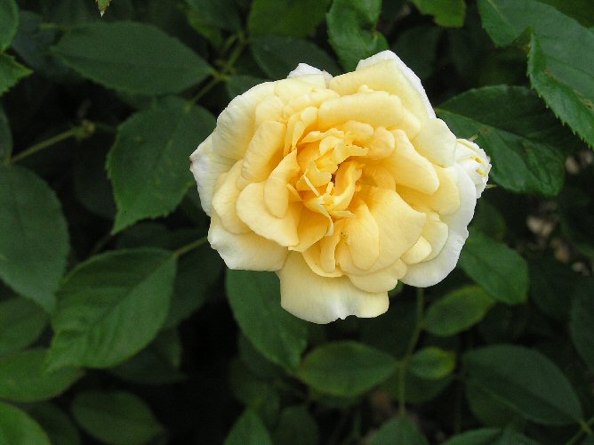 Repeat flowering blooms of deep yellow changing to cream, with a mild fragrance, that age to cream and very rich green shiny foliage. 1.5m x 1.5m