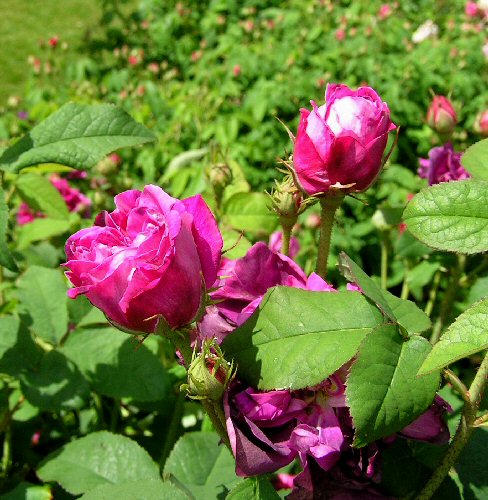 Grow in fertile, moist but well-drained soil that does not dry out, in full sun or partial shade. Unlike modern bush roses, shrub roses generally flower on older wood and should be allowed to develop naturally, with a light but regular pruning, during late winter, and with a balance of older wood and young, vigorous growth. Maintain a balanced framework by reducing strong new growth in late winter by up to one-third. Prune back the previous season's growths by a third to a half of their length and shorten strong sideshoots to two or three buds To encourage new shoots lightly pruning mature plants each winter by cutting some of the older main stems back to the base. This encourages vigorous new shoots from the base that will flower the following summer. Regularly dead head and mulch after pruning.