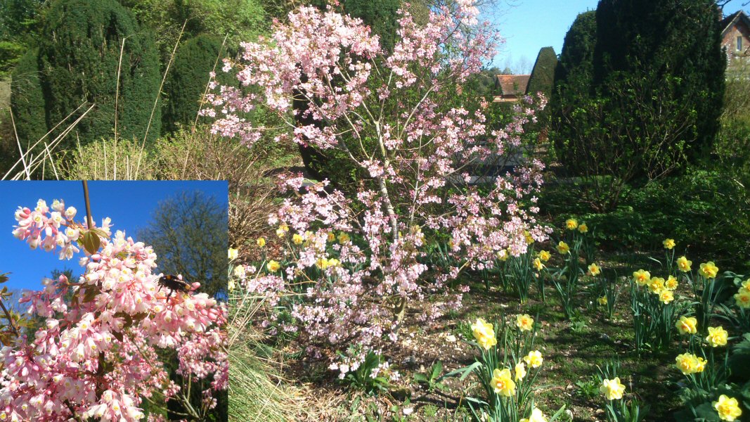 A rare showy, fragrant, deciduous hardy shrub or small tree to 6m, for the early spring garden, native to China. Pale pink bell-shaped flowers, in nodding 10cm (4in) panicles appear before the bronze young leaves, followed by greenish-white bladder like fruit to 10cm (4in) long. It is these seed capsules that give rise to the common name
