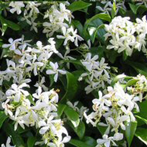 A vigorous medium-sized, frost hardy, evergreen twining woody climber, native to East Asia and Japan, with glossy dark green, oval leaves 5-8cm in length and often turning deep red in winter; clusters of very fragrant white flowers 2.5cm in width become cream with age.