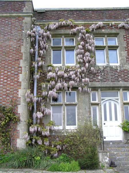 Hardy, climbing shrub that can grow to over 30m over many supports via powerful clockwise-twining stems with distinctive fragrant, pale-rose, tipped purple, flower racemes in mid-spring that can reach nearly half a meter in length and dark-green, leaves 10-30 cm in length. Poisonous, brown, velvety, bean-like seed pods 5-10 cm long mature in summer and persist until winter.